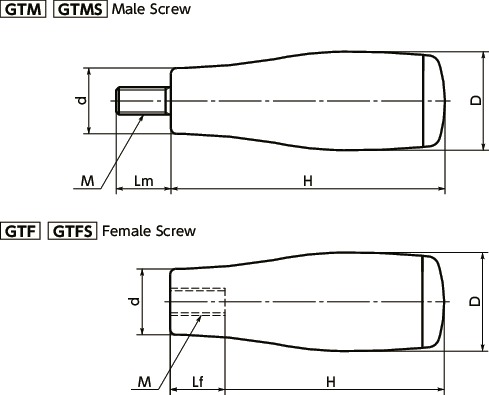 - The grip and screw are integrally-molded by insert. This enhances the thread part durability.