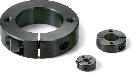 - Set collars with mounting hole (female screw). Can be mounted to any machine or device, such as wheels, flanges and plates, by using the mounting hole (female screw).