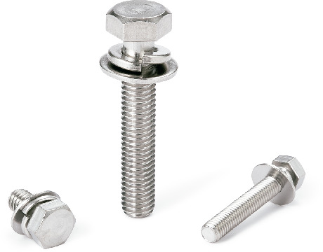 - Hexagon head screws with captive washer compliant with JIS B 1187.