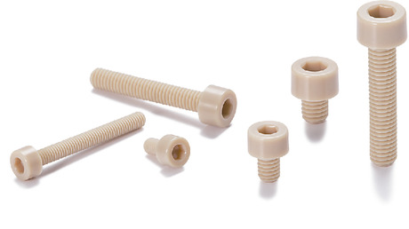 - Hex socket head cap screws made of PEEK containing glass fiber for increased strength. The tensile strength of the material is approximately 1.7 times that of ordinary PEEK.