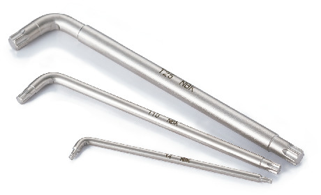 - A hexalobular wrench with a handle shorter than that of normal wrenches, reducing height during operation.