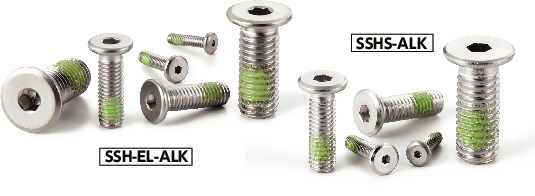 - Stainless steel hex socket head cap screw with special low profile and nylon patch.
