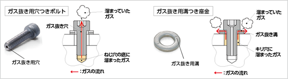 ねじ穴やキリ穴に溜まったガスを効率的に排出することで、真空度の安定や高真空を実現します。
