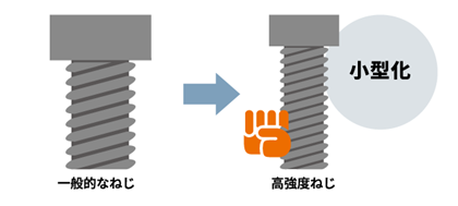 必要な締結力に対してねじ径を小さくすることができ、装置を小型化できます。