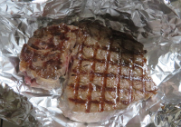 ⑧グリルプレートからお肉を取り出して、アルミホイルで包み4分間寝かせます。
