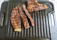 ②グリルプレートを中火で200℃くらいに温めます。温まったらとろ火にして、グリルプレートの