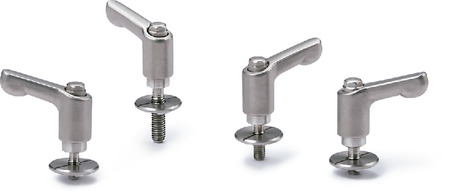 - 長穴用座金が組み込まれた、オールステンレス製のミニクランプレバー。