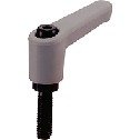 - 長穴用座金が組み込まれた、オールステンレス製のミニクランプレバー。
