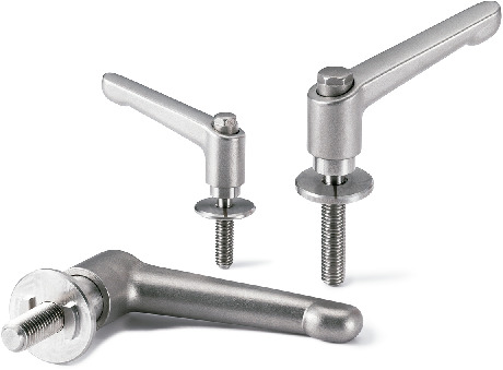 - 長穴用座金が組み込まれた、オールステンレス製のクランプレバー。