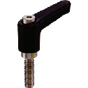 - 操作ボタンつきのミニプラクランプレバー。おねじタイプ。