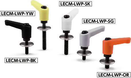 - 長穴用座金が組み込まれたミニプラクランプレバー。