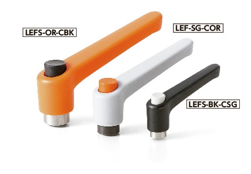 - 操作ボタンつきのプラクランプレバー。めねじタイプ。