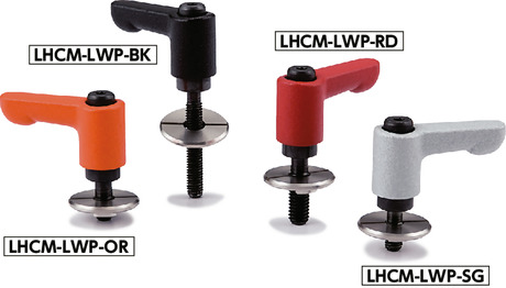 - 長穴用座金が組み込まれたミニクランプレバー。