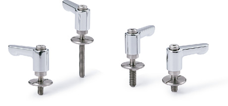 - 長穴用座金が組み込まれた、ねじ部がステンレス製のミニクランプレバー。