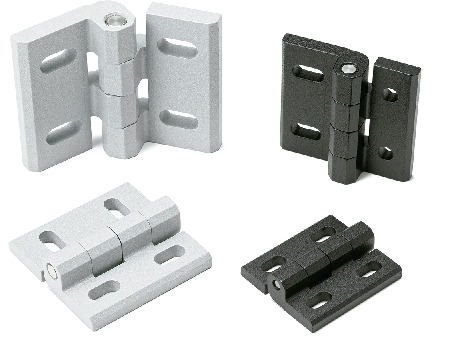 - 垂直または水平の長穴により、取りつけ位置の調整が可能なヒンジです。