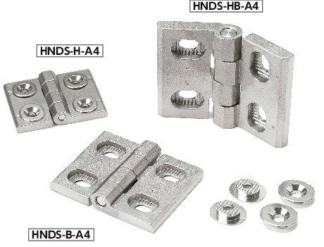 HNDS-HB-A4----片側2ヵ所は垂直方向、もう片側2ヵ所は水平方向に調整可能 - オプションで取りつけ用の六角穴付き皿小ねじ(SUS316L製)を4本付属します。ねじ付属サービス(別料金)をご利用ください。
