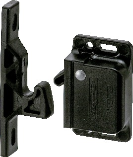 - キャッチに内蔵されたスプリングの働きで、キャッチはキーパー(ドア)を引っぱり、ドアは閉まります。ドアを開けるときは、ドア保持力を超える力で引いてください。