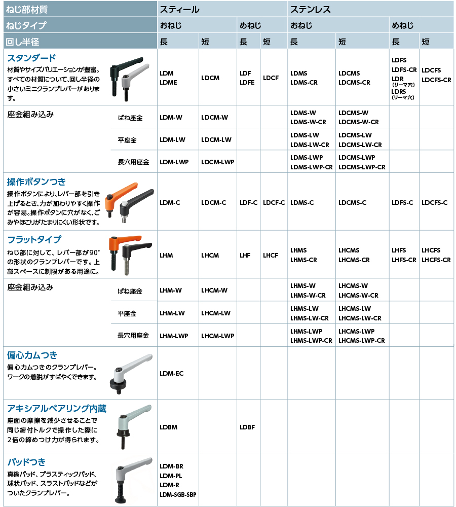 スタンダードなものからユニークなものまで豊富なラインアップ。 NBKはお客さまのニーズに合わせたクランプレバーをご提案します。